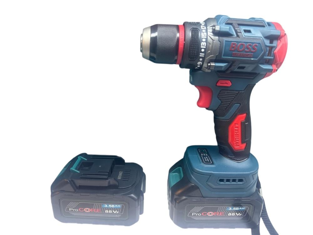 دريل شحن لاسلكي لفك وربط البراغي للحديد والخشب بطاريتين ب88 ماركة BOSS الصناعة الصين 3 وضعيات ضمان تشغيلي